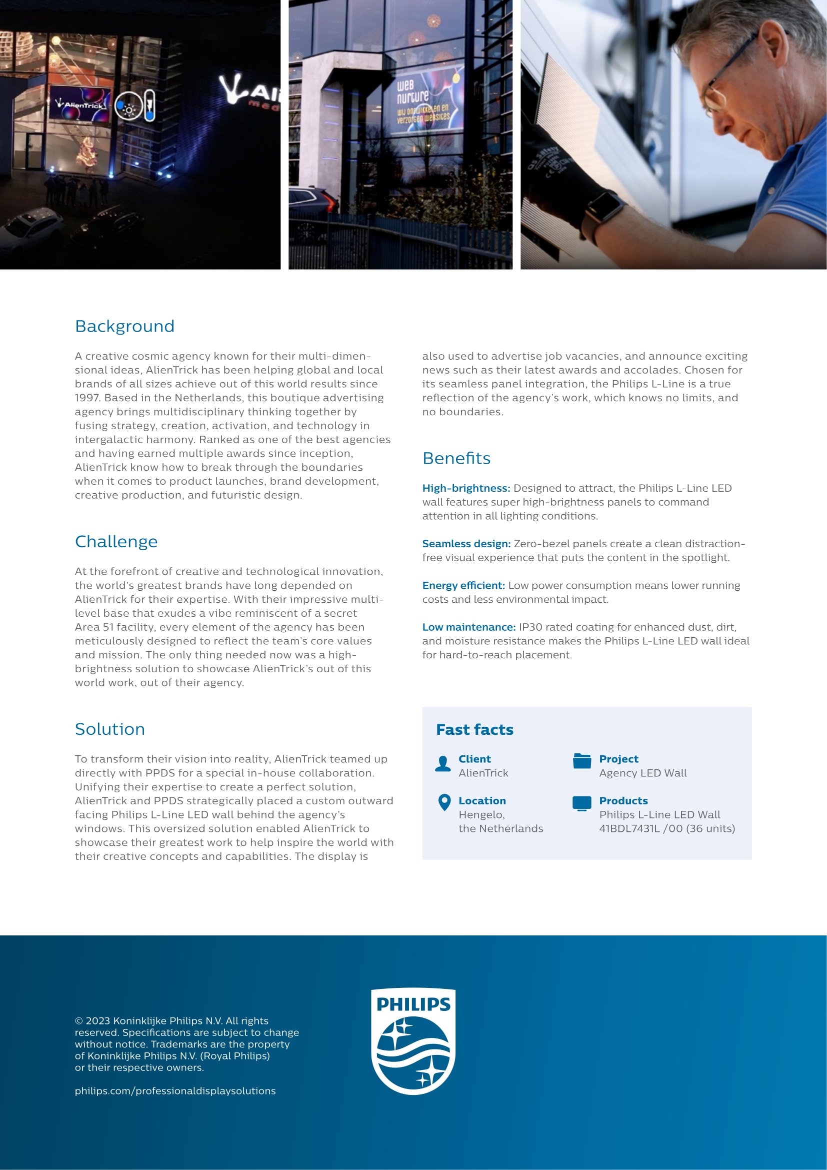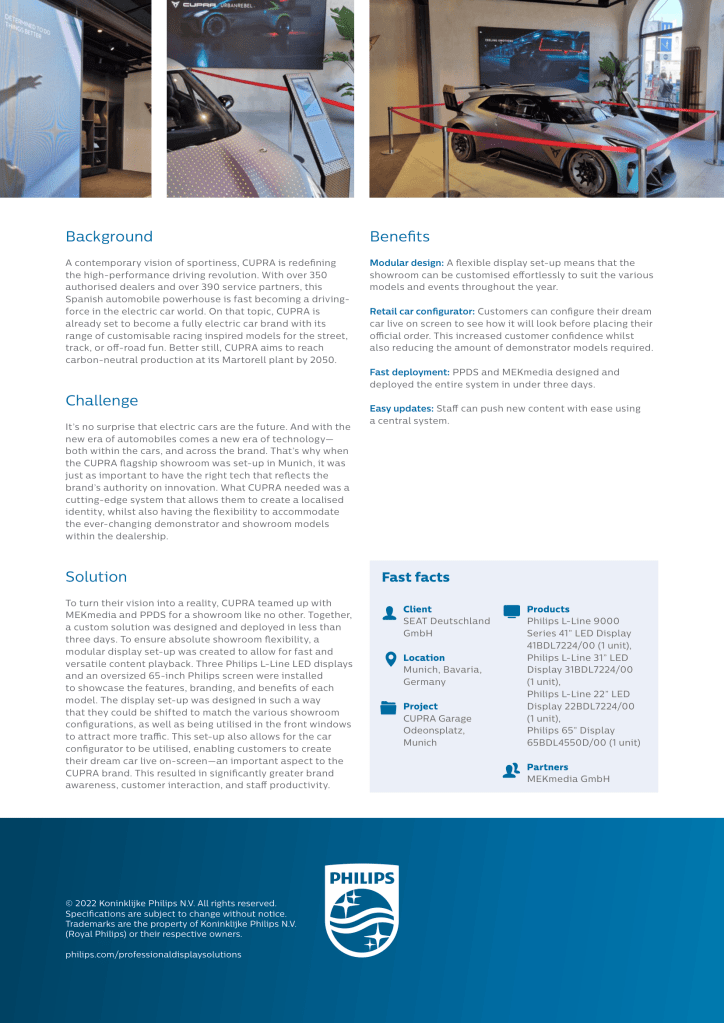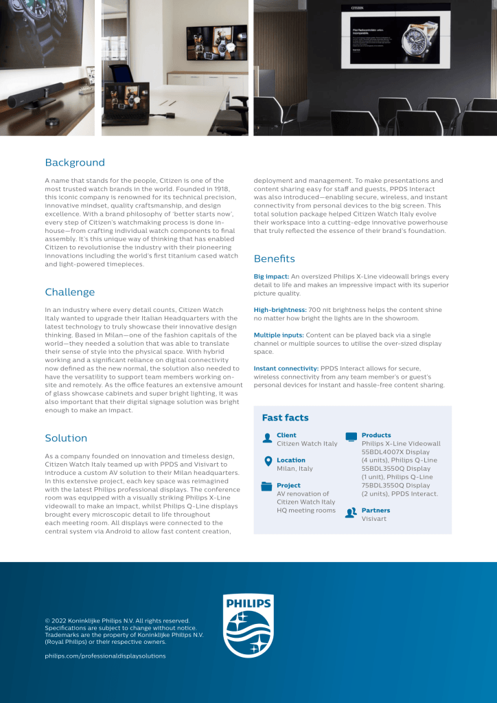 A large part of my freelance work with Philips Professional Display Solutions has involved writing case studies on their impressive business to business projects. I’ve been fortunate enough to interview high profile business owners from around the world to create branded communication that highlights each project’s success. The complete range of case studies can be found on the official Philips Professional Display Solutions page.