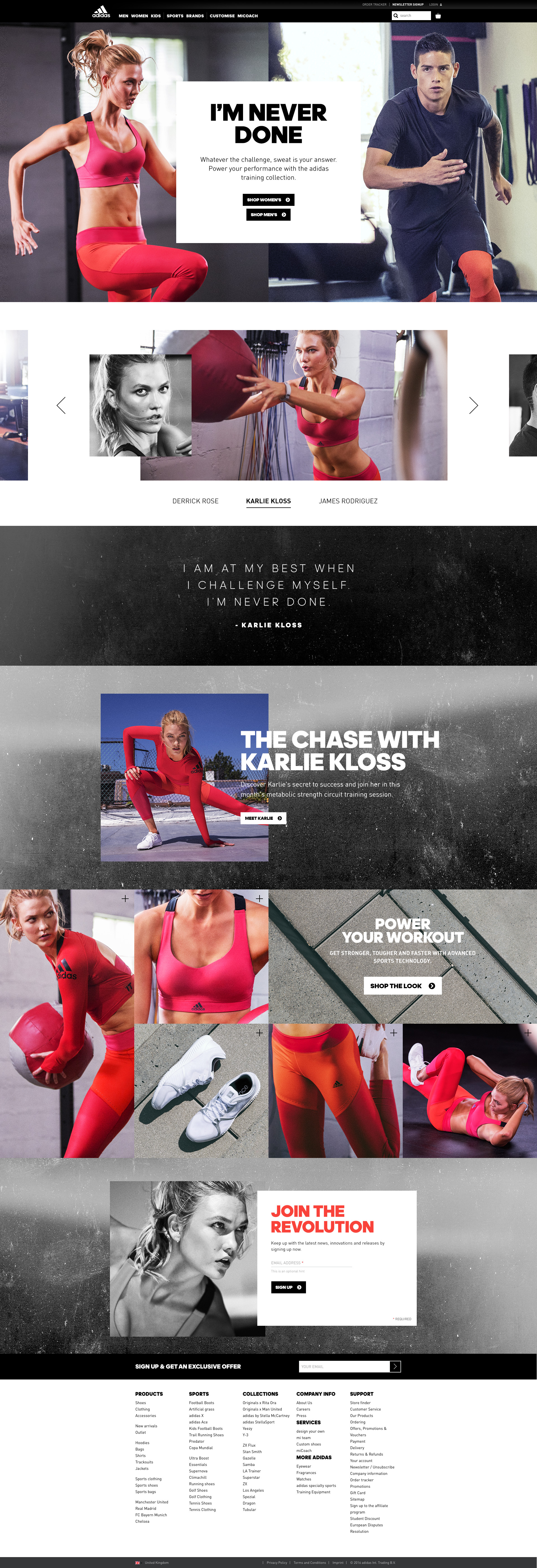 I had the pleasure of writing for Karlie Kloss while heading up the copy for the adidas Training category. This was part of the Never Done global campaign, which included in-depth interviews, product information, newsletters, social integration, and training routines developed with EXOS, the leaders of human performance.