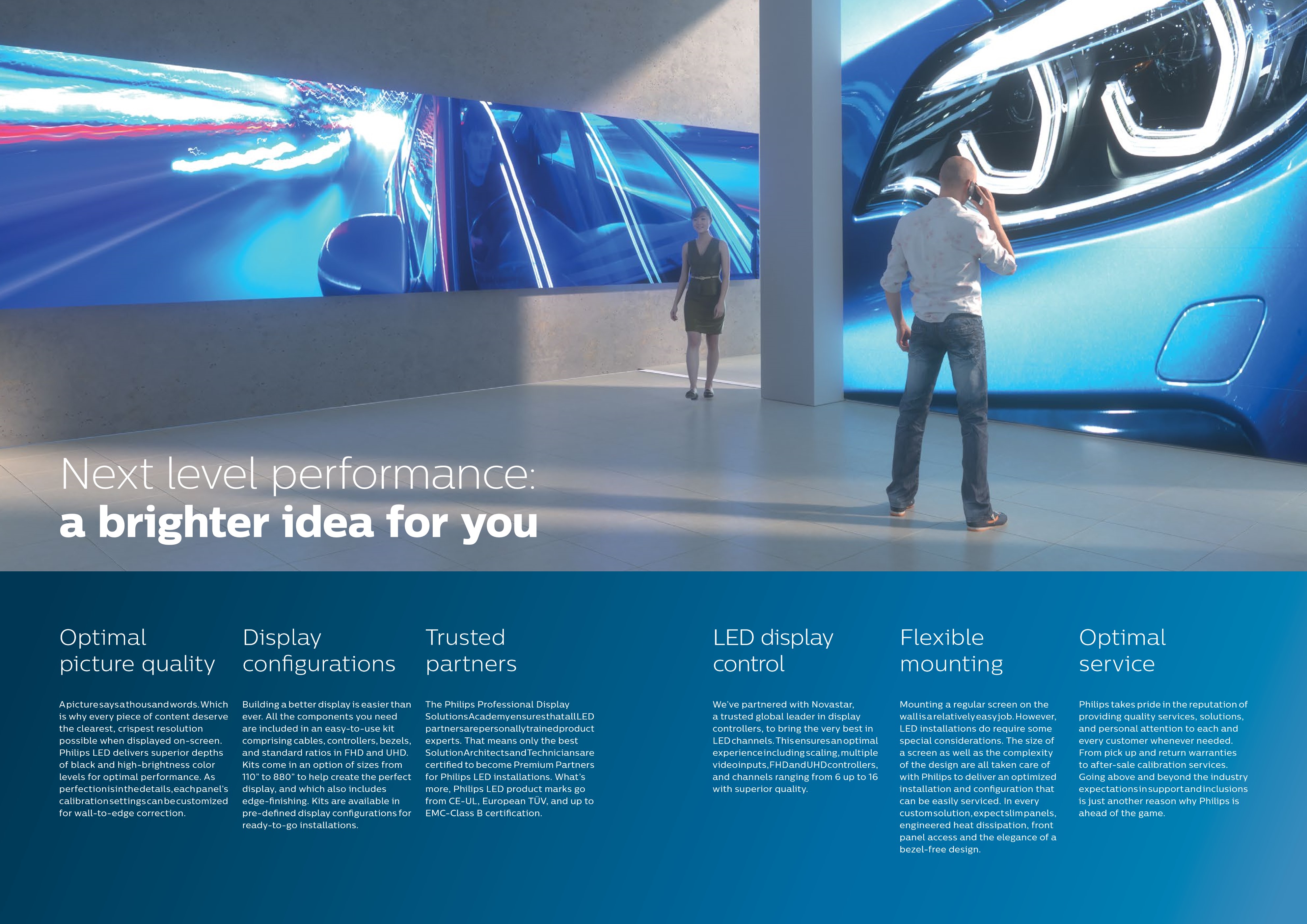 When Philips Professional Display Solutions created the revolutionary bezel-free LED, I had the honour of creating its global identity and product brochure. With infinite product design capabilities, it was only fitting for me to create powerful content that matched its endless possibilities.