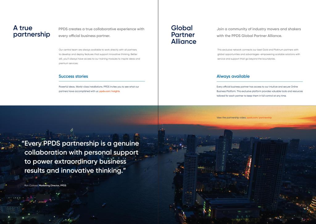 System Integrators are a key component to the success of PPDS. They’re the people that bring the magic of the tech to life through tailored installations. When PPDS was launched, I was responsible for creating all the material to attract more System Integrators to collaborate with the brand. This included a promotional video, brochure, official partnership certificates and plaques, official partnership letters, web copy, social copy, and partnership packages.
